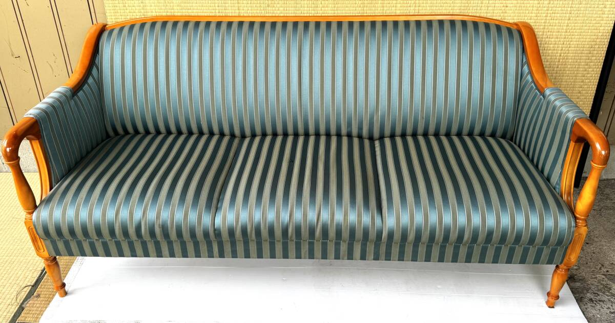 - 福岡市内送料無料 MORISHIGE モリシゲ Nスペンサー ストライプ・3Pソファ- 座面の汚れあり