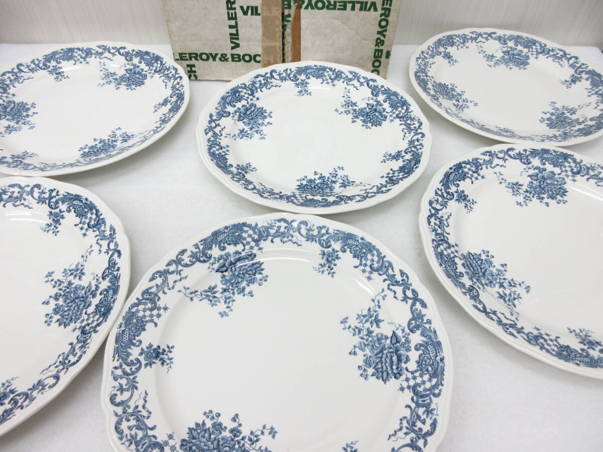 > 未使用保管品 Villeroy&Boch ビレロイボッホ valeria ブルー ディナープレート 大皿 6枚セット 27cm ヴィンテージ 西ドイツ メトラッハ