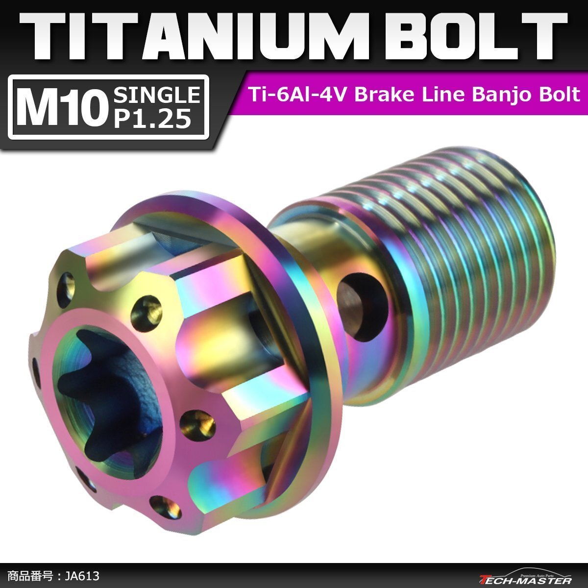 > M10 P1.25 シングル 64チタン合金 ブレーキライン バンジョーボルト 1本ホース用 トルクス穴付き 焼きチタンカラー ライトカラー 1個 JA613