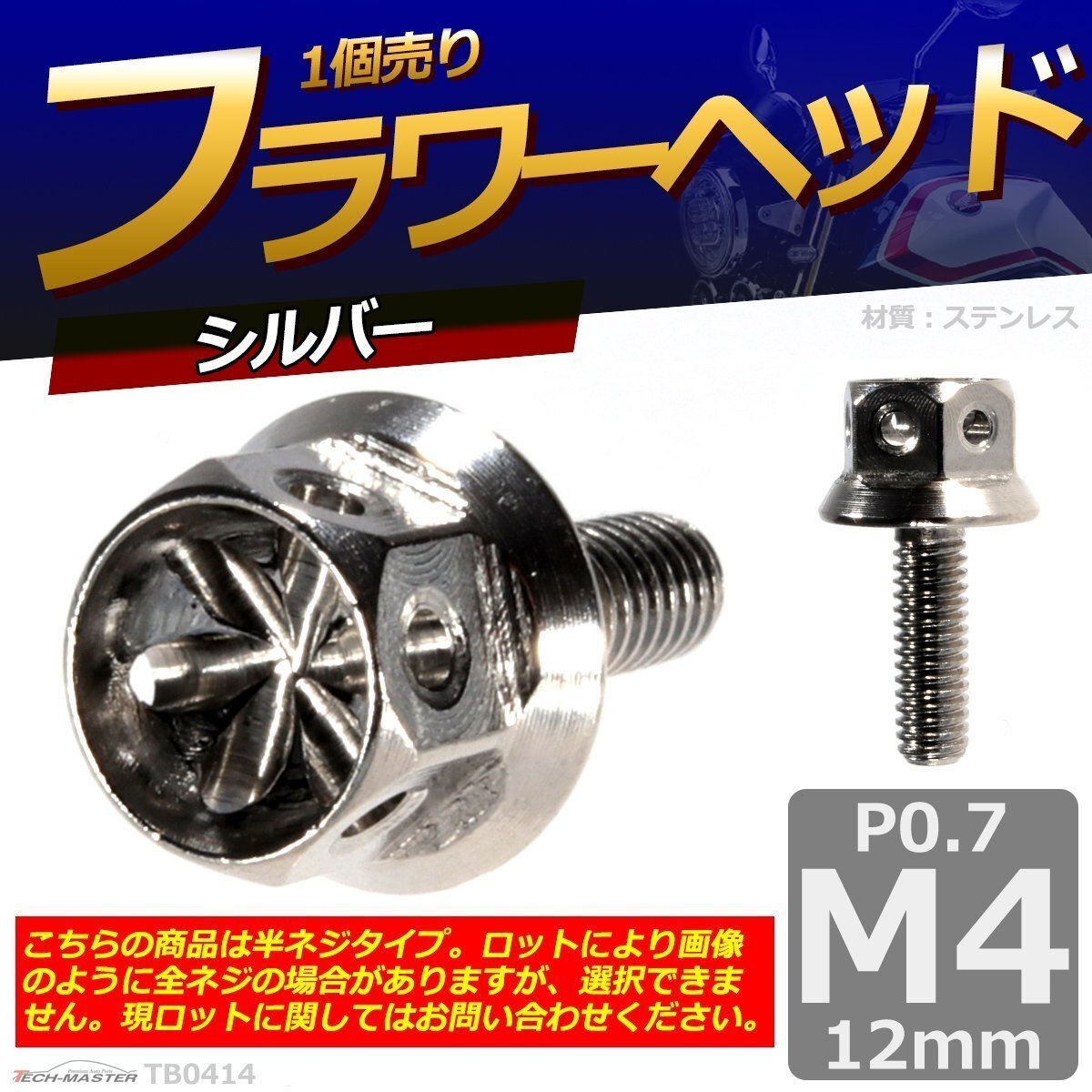 - M4×12mm P0.7 フラワーヘッド 六角ボルト ステンレス 車/バイク/自転車 ドレスアップ シルバー 1個 TB0414