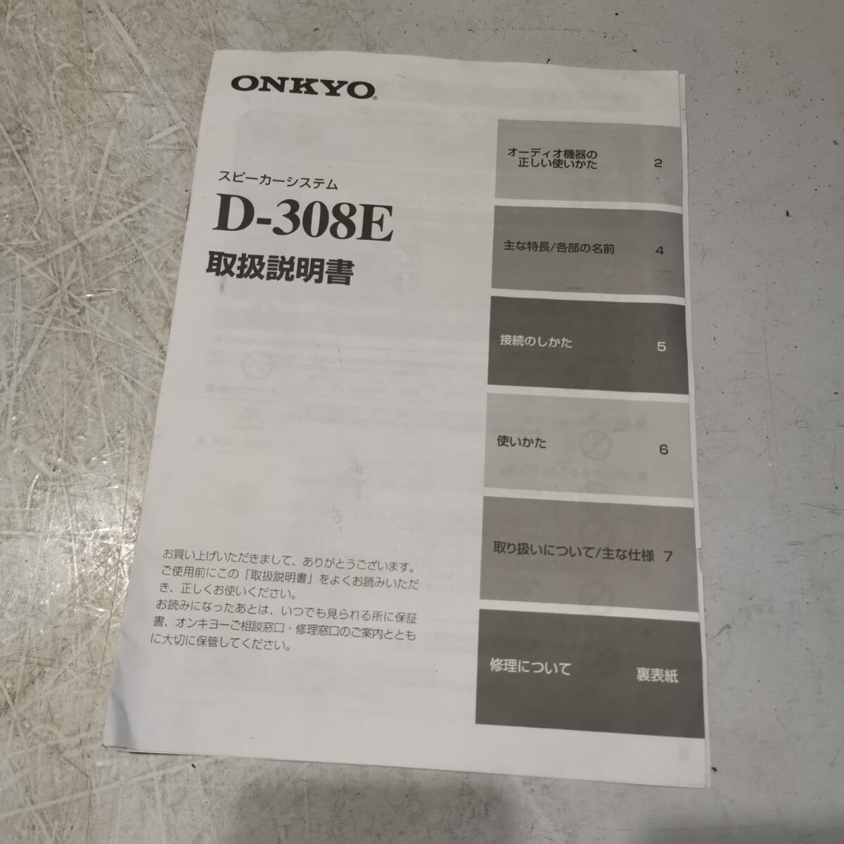 - ONKYO D-308E スピーカー 説明書のみ 中古 クリック 送料無料!!