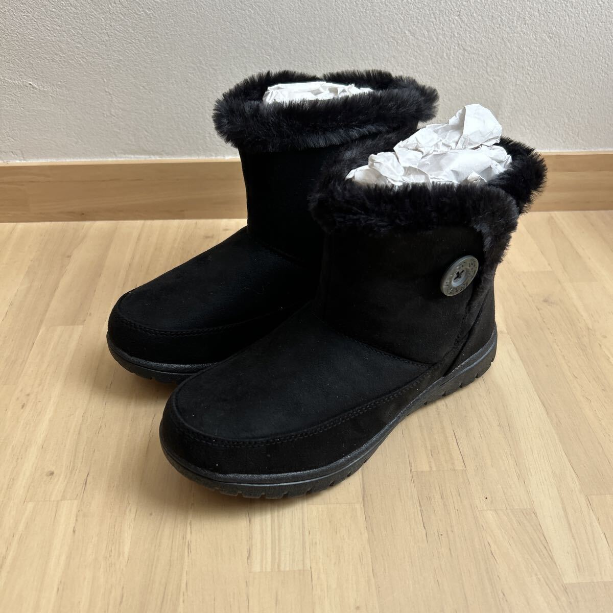 > スパイク付き防水 ブーツブラック ◆ 22.5 レディース 女性 靴 ショートブーツ 黒 ローヒール 防寒 防水 スノーブーツ おしゃれ 雪道 スパ