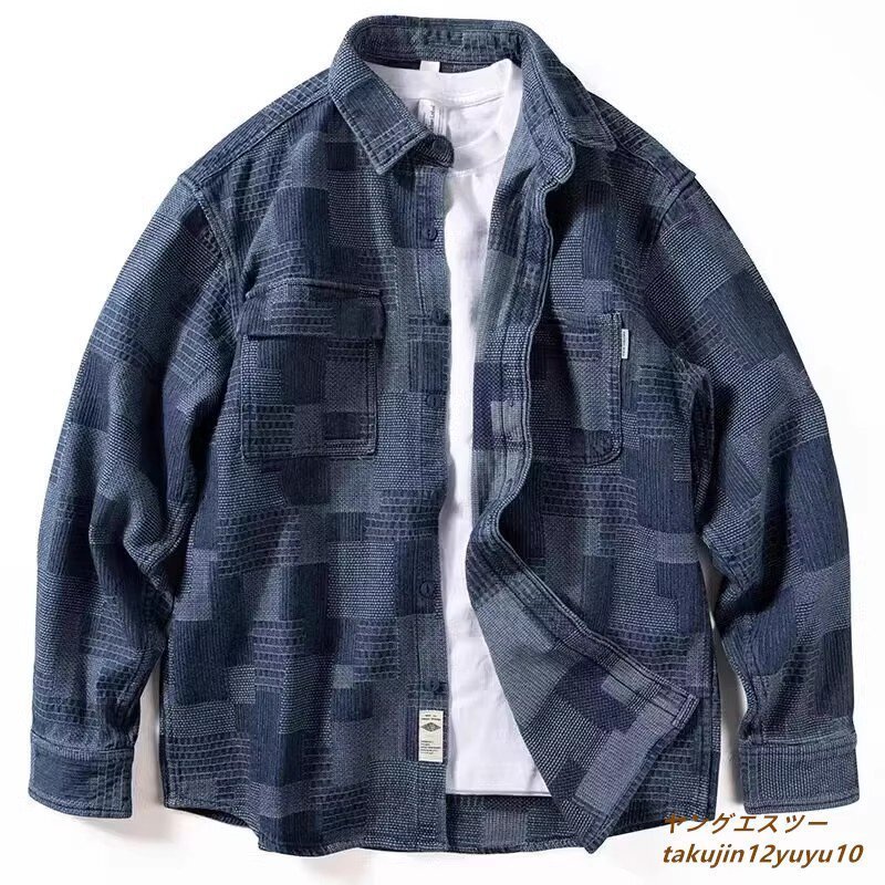 - 秋新品 メンズ 長袖シャツ デニムシャツ チェック柄 正規品 ヴィンテージ 超希少 極美品 デニムジャケット カジュアル 心地良し ブルー XL