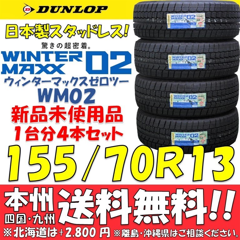 > 155/70R13 75Q ダンロップ ウィンターマックス02 WM02 2024年~2025年製 新品4本セット 即決価格◎送料無料 国内正規品スタッドレスタイヤ