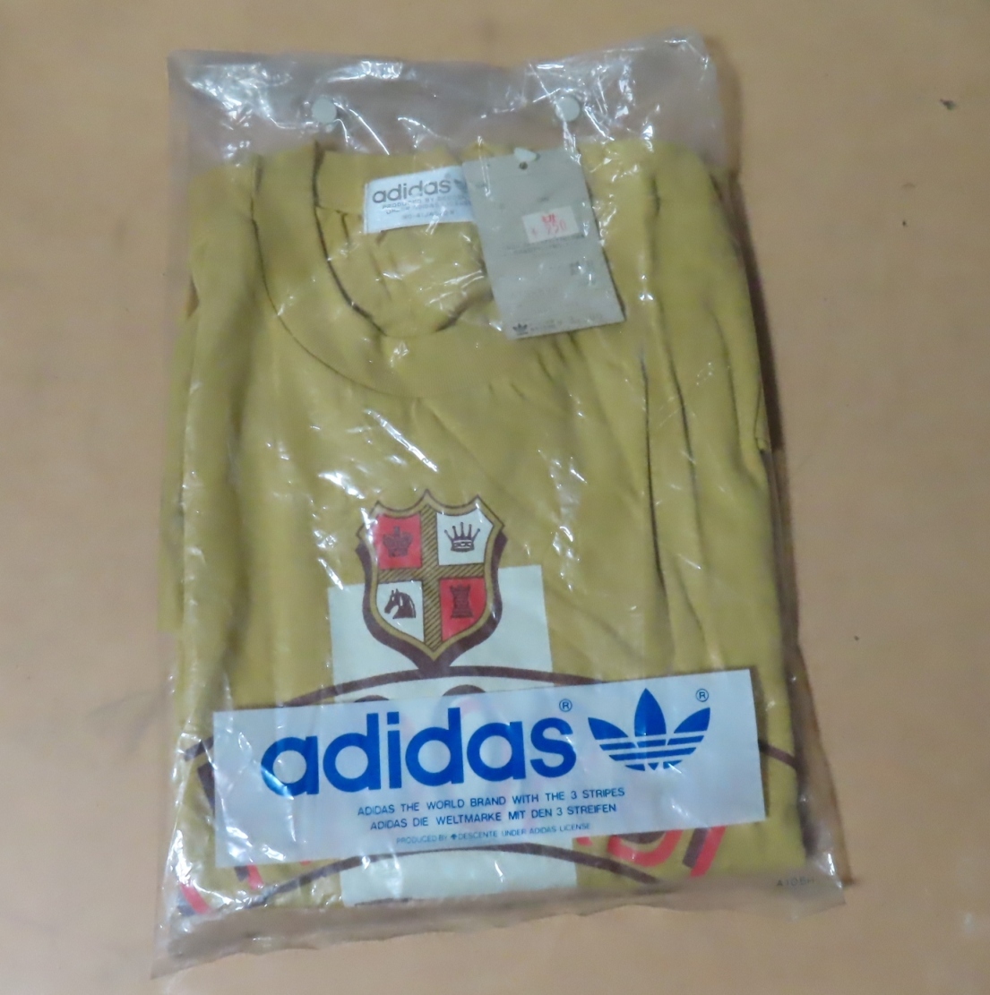 > 〓★20-30年位昔の未使用Tシャツ●胸囲90、身長165★〓アディダス adidas/ATS-590〓黄土色 綿100%〓デサント/DESCENTE