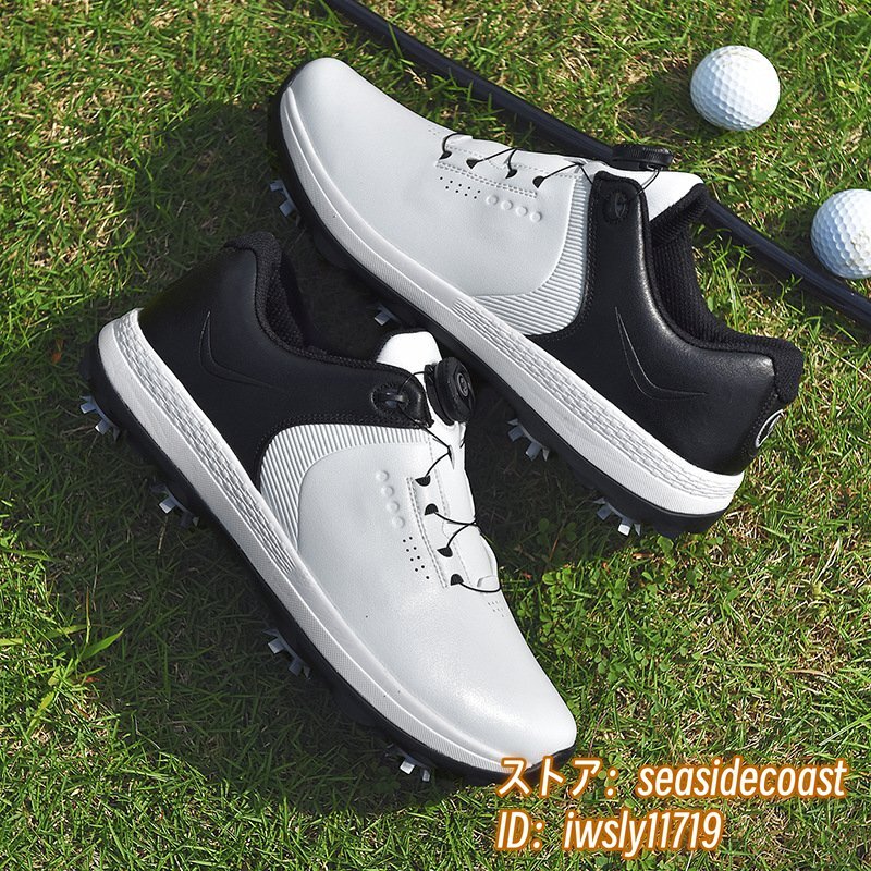 > 高級品 ゴルフシューズ 強いグリップ ソフトスパイク 運動靴 フィット感 軽量スポーツシューズ 新品 弾力性 通気性 防滑 耐磨 白/黒 27.5cm
