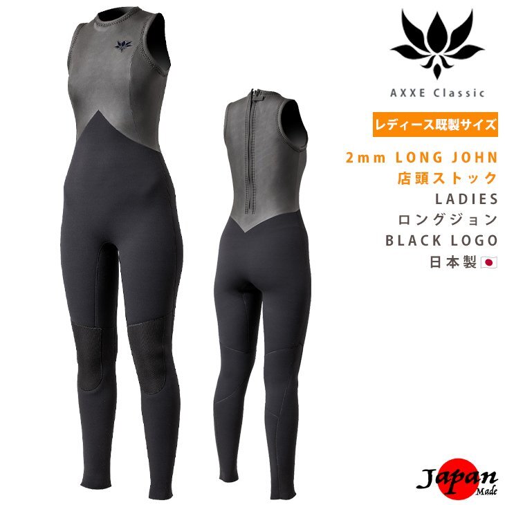 > ■AXXE Classic■2025 日本製 レディース 2mm ラバー ロングジョン ML (160cm/53kg) BLACK ロゴ バックジップ アックスクラッシック