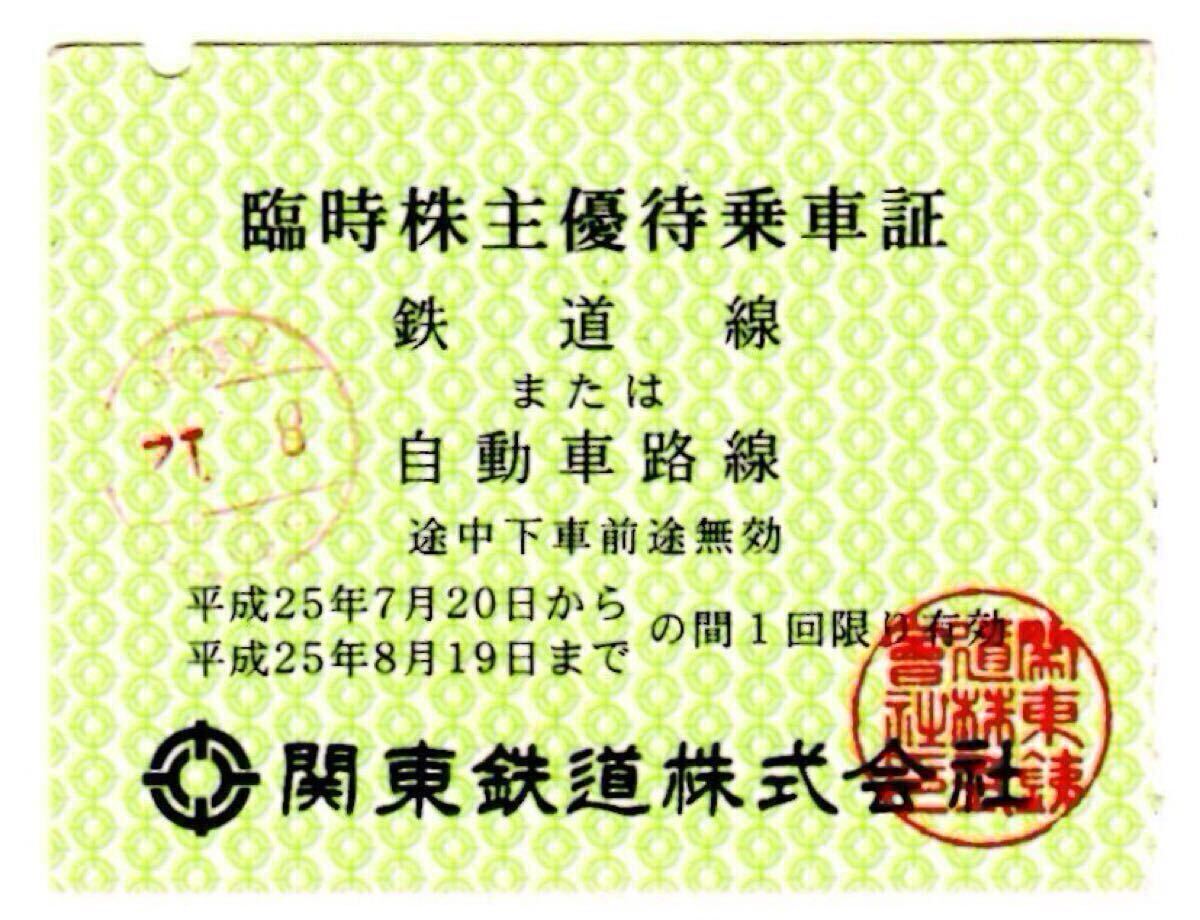 - 【関東鉄道】臨時株主優待乗車証(使用済み)