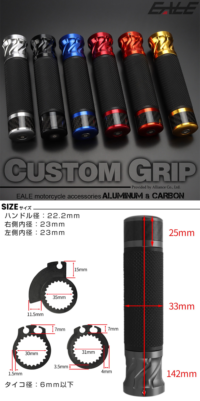 - バイク グリップ カーボン アルミ ラバー バーエンド付き ハンドル 22.2mm用 ブラック 左右セット カスタム ドレスアップ S-250-BK