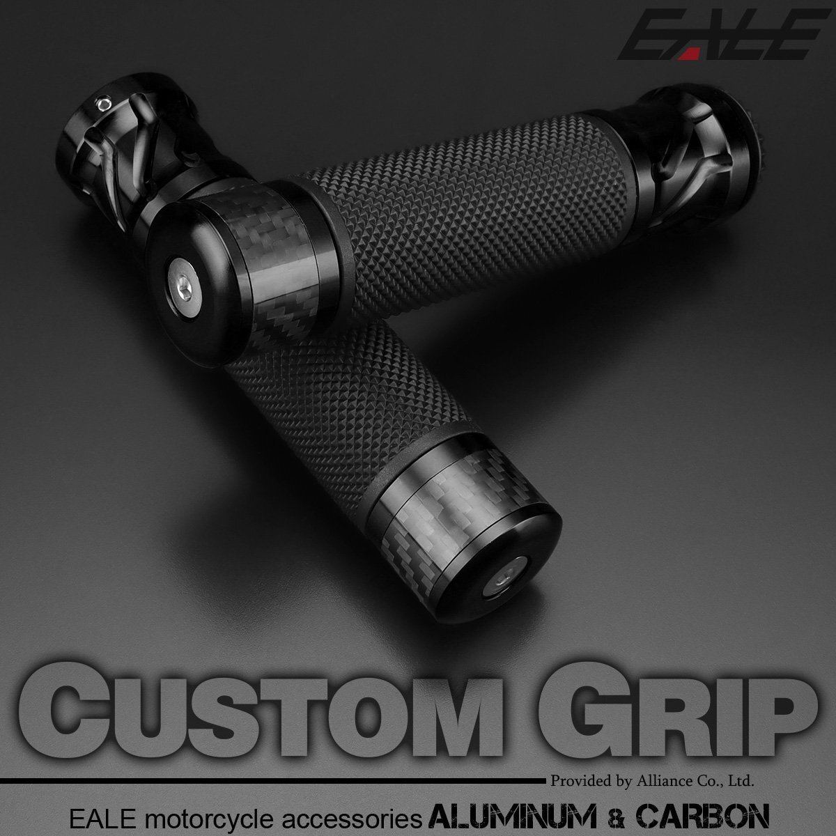 > バイク グリップ カーボン アルミ ラバー バーエンド付き ハンドル 22.2mm用 ブラック 左右セット カスタム ドレスアップ S-250-BK