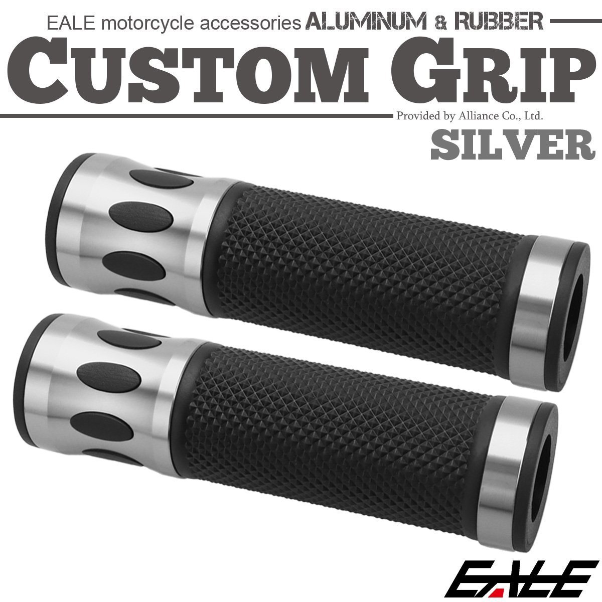 > バイク グリップ ハンドル アルミ ラバー 貫通タイプ 22.2mm用 シルバー 左右セット カスタム ドレスアップ S-573-S