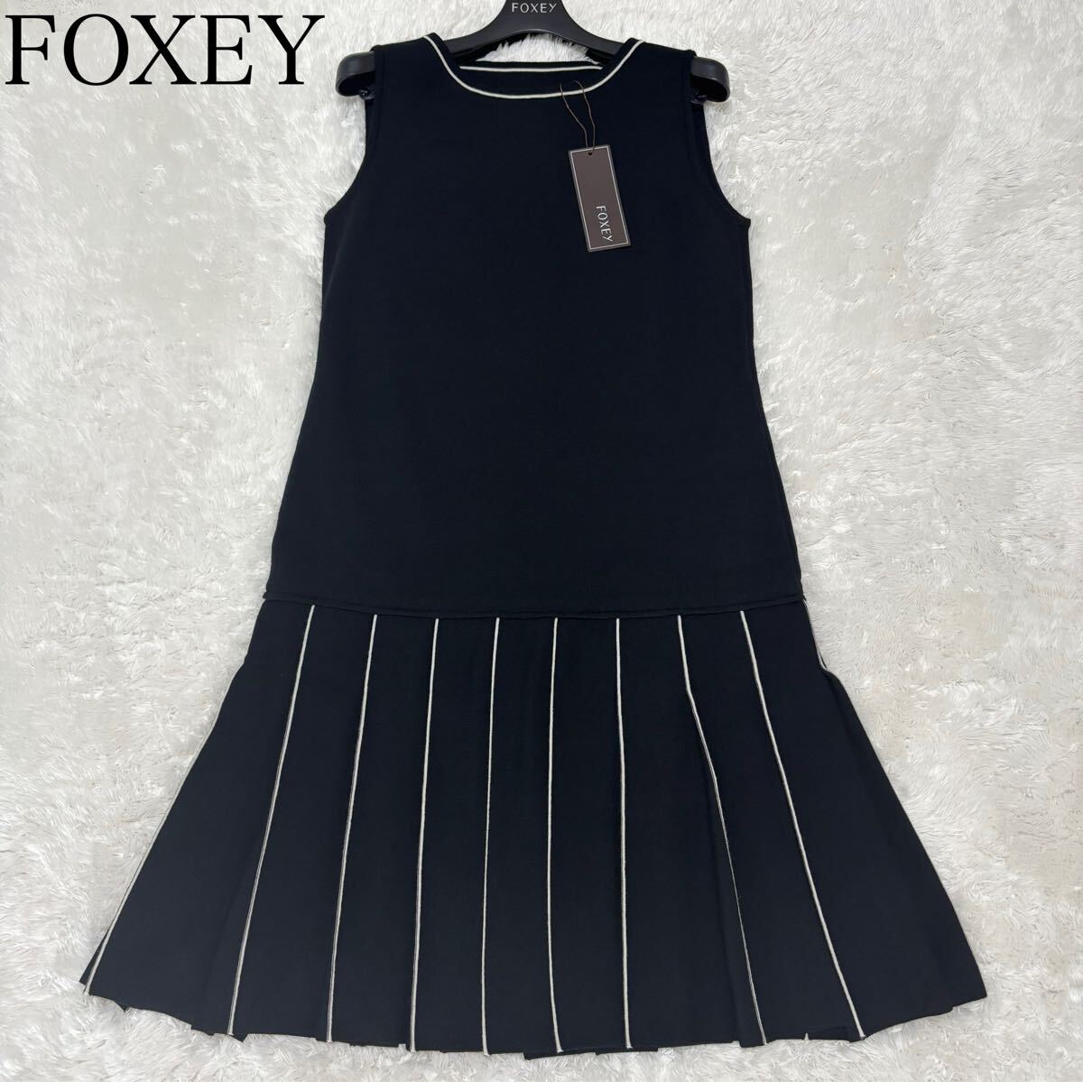 - 20年 FOXEY Knit Dress 裾プリーツ バイカラー 40192 フォクシー