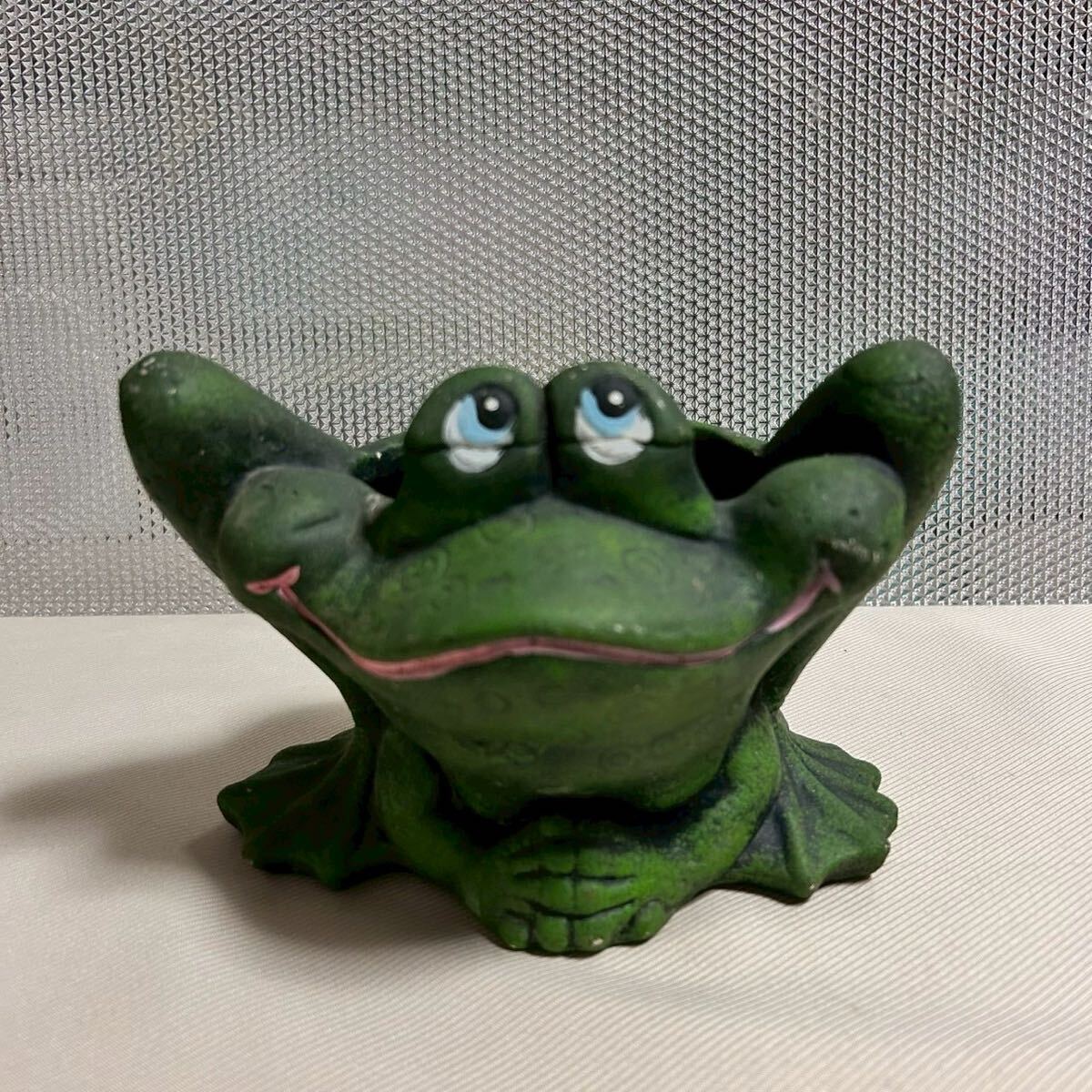 - HS.カエル フロッグ 置物 プランター 植木鉢 陶器製 陶器製