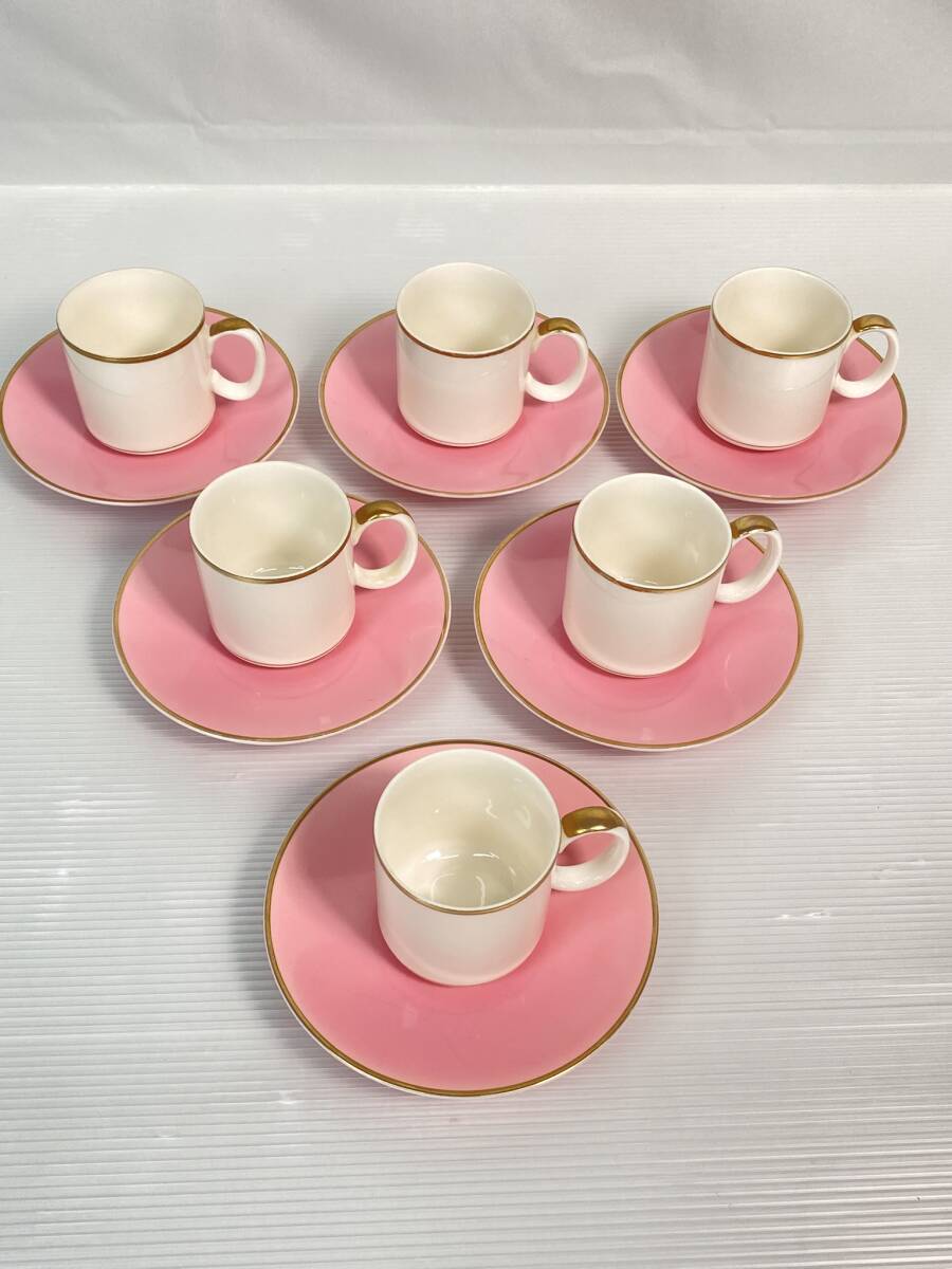 - 2508-151 NAGOYA CERAMIC ナゴヤセラミック デミタスカップ&ソーサ― 6客 ピンク&ホワイト ゴールド