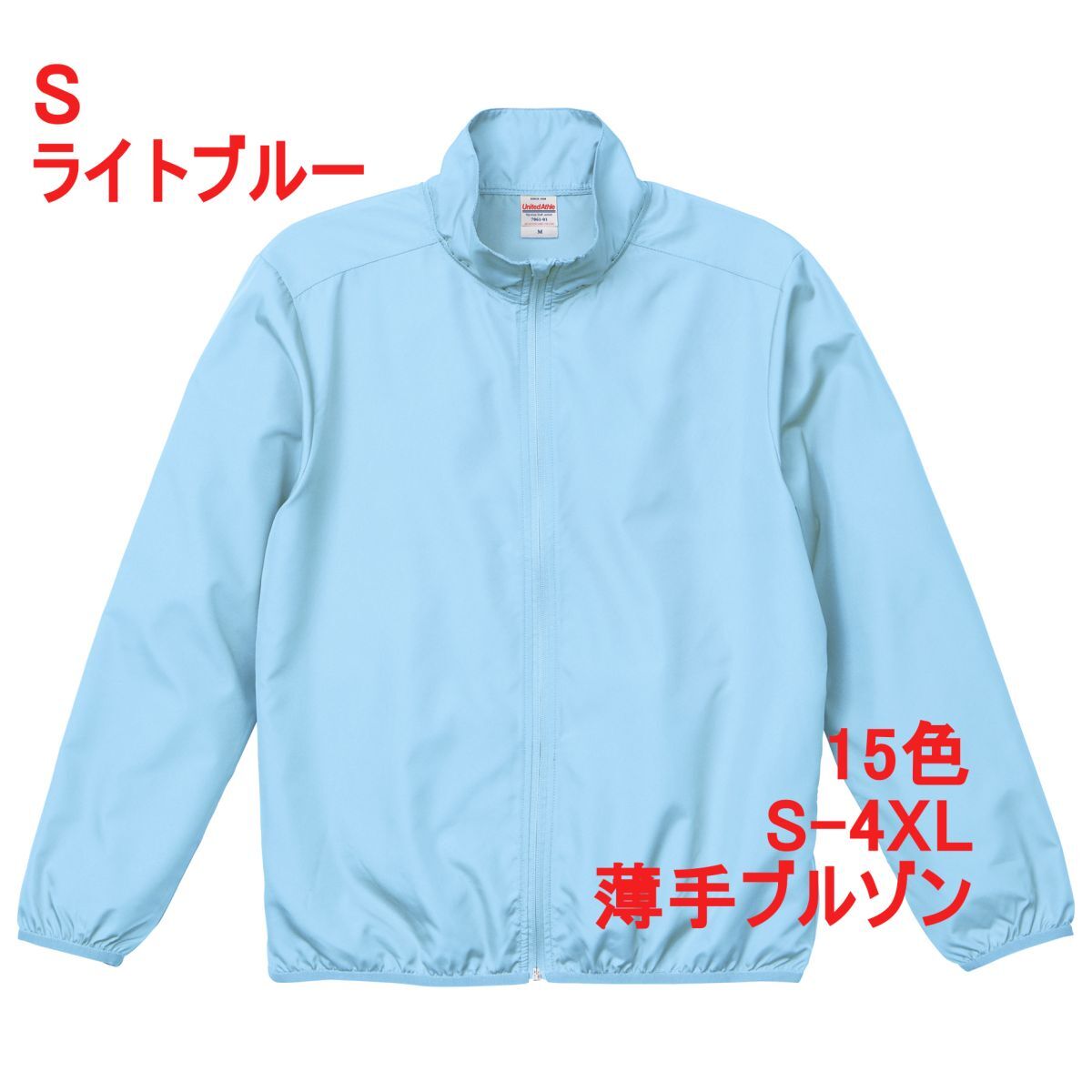 - ブルゾン S ライト ブルー 薄手 ジップアップ ジャケット スタンドカラー 無地 定番 フルジップ ファスナー A675 水色 706101