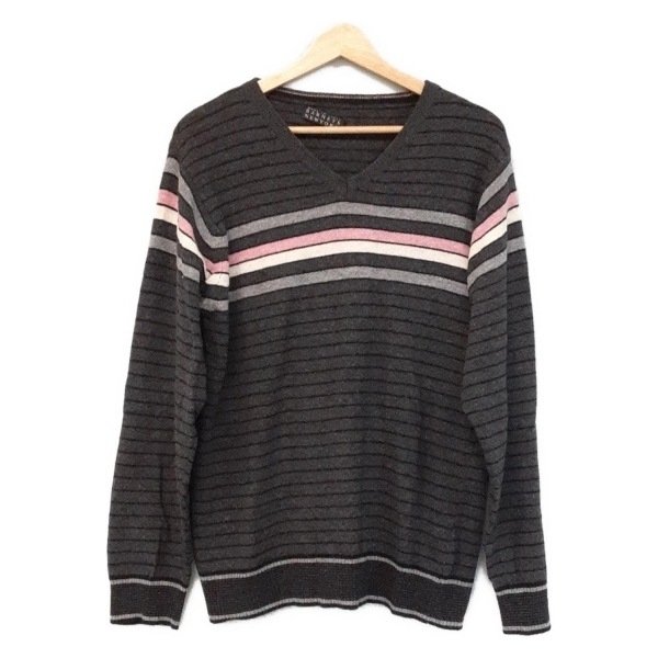 > バーニーズ BARNEYSNEWYORK 長袖セーター/ニット サイズ48 XL - ダークグレー×アイボリー×マルチ メンズ Vネック/ボーダー 美品 トップス