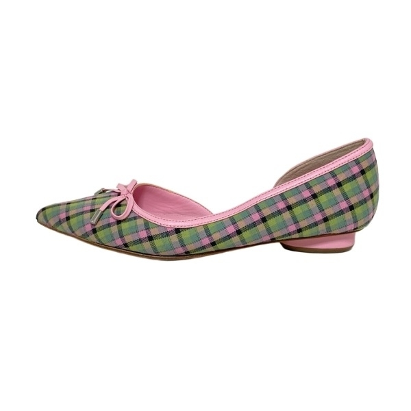 - ツルバイマリコオイカワ TSURU BY MARIKO OIKAWA パンプス 38 - レザー イエローグリーン×ピンク×マルチ レディース チェック柄/リボン