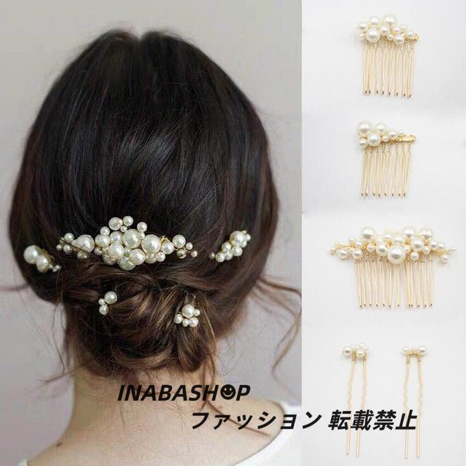 > ウェディング ヘアアクセ ヘアアクセサリー パール 5点セット ウエディング 髪飾り 花嫁 結婚式 ゴールド ゲスト ヘッドドレス ブライダル
