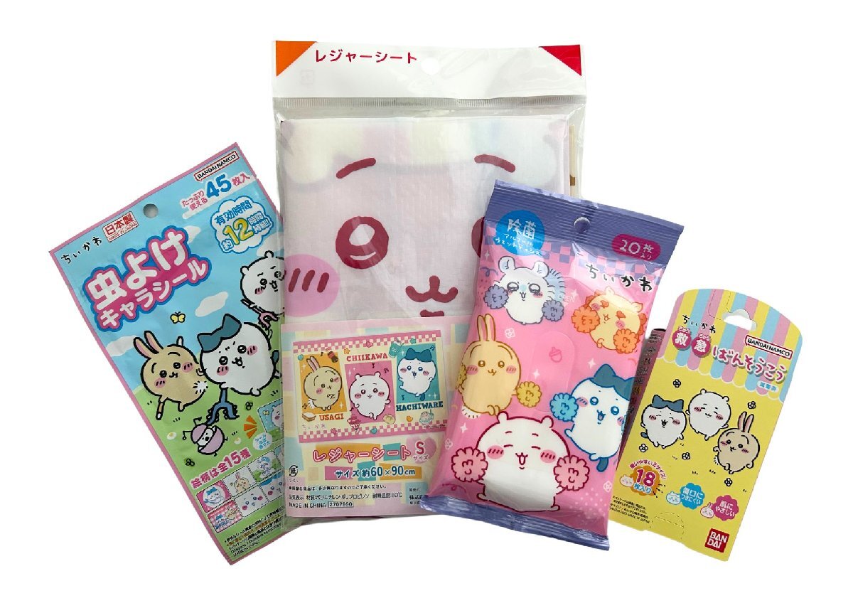 - ちいかわ お出かけセット レジャーシート ウェットティッシュ 絆創膏 虫よけキャラシール 4点セット