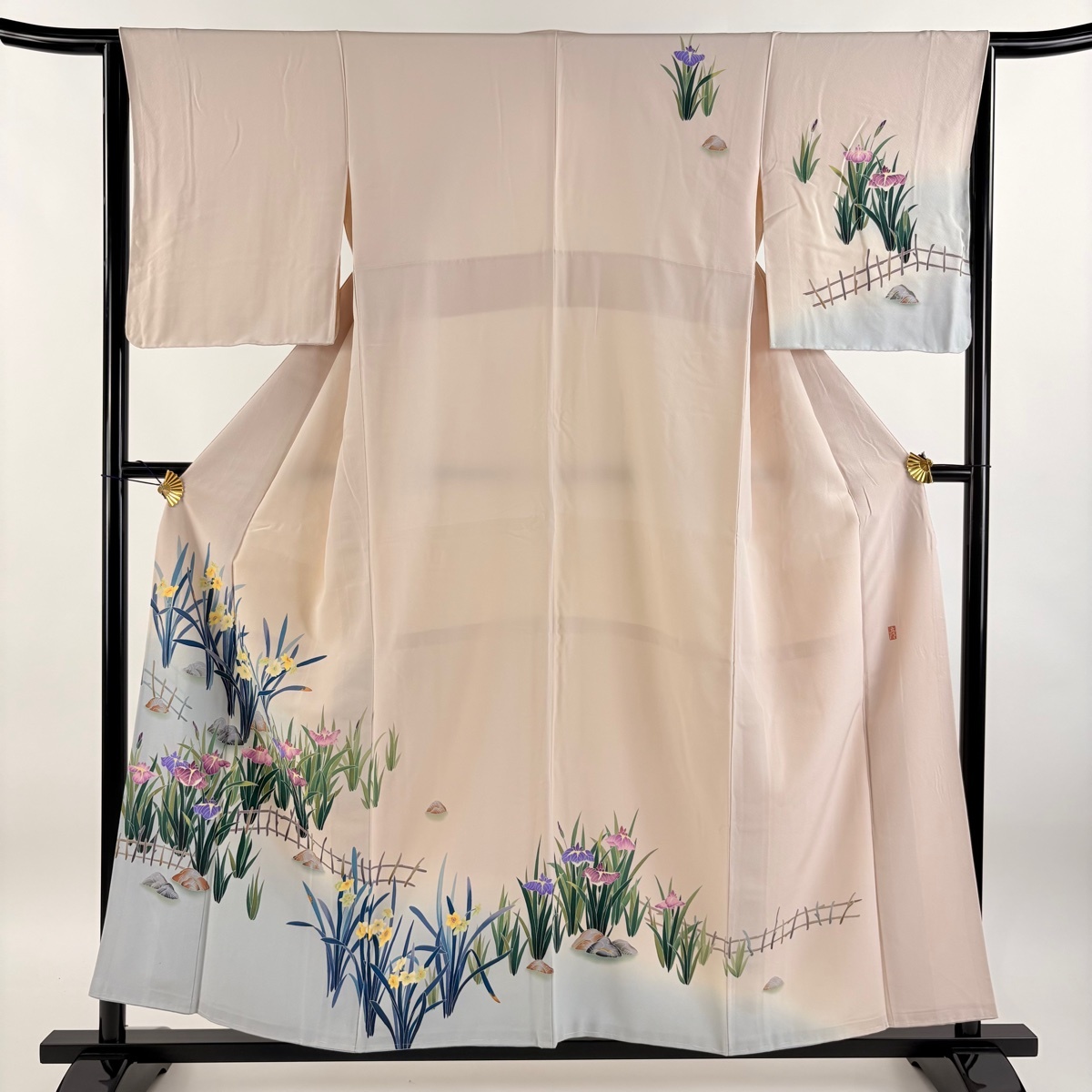 - 訪問着 身丈154.5cm 裄丈64.5cm M 袷 田村哲彦 落款 すいせん 菖蒲 ぼかし 薄小豆 正絹 名品 【中古】