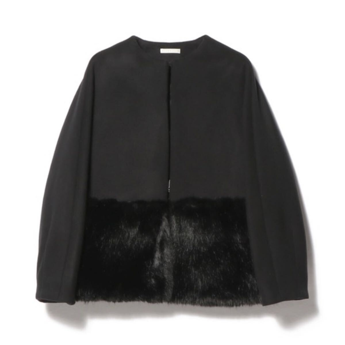- ESTNATIONウールビーバーファーヘムショートコートノーカラーコート黒ファーコートエストネーション