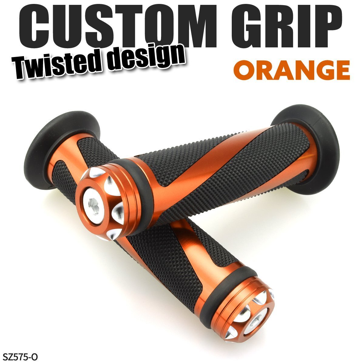> バイク グリップ ラバー×アルミ ツイストデザイン 左右セット バーエンド付き 22.2mmハンドル用 オレンジ SZ575-O