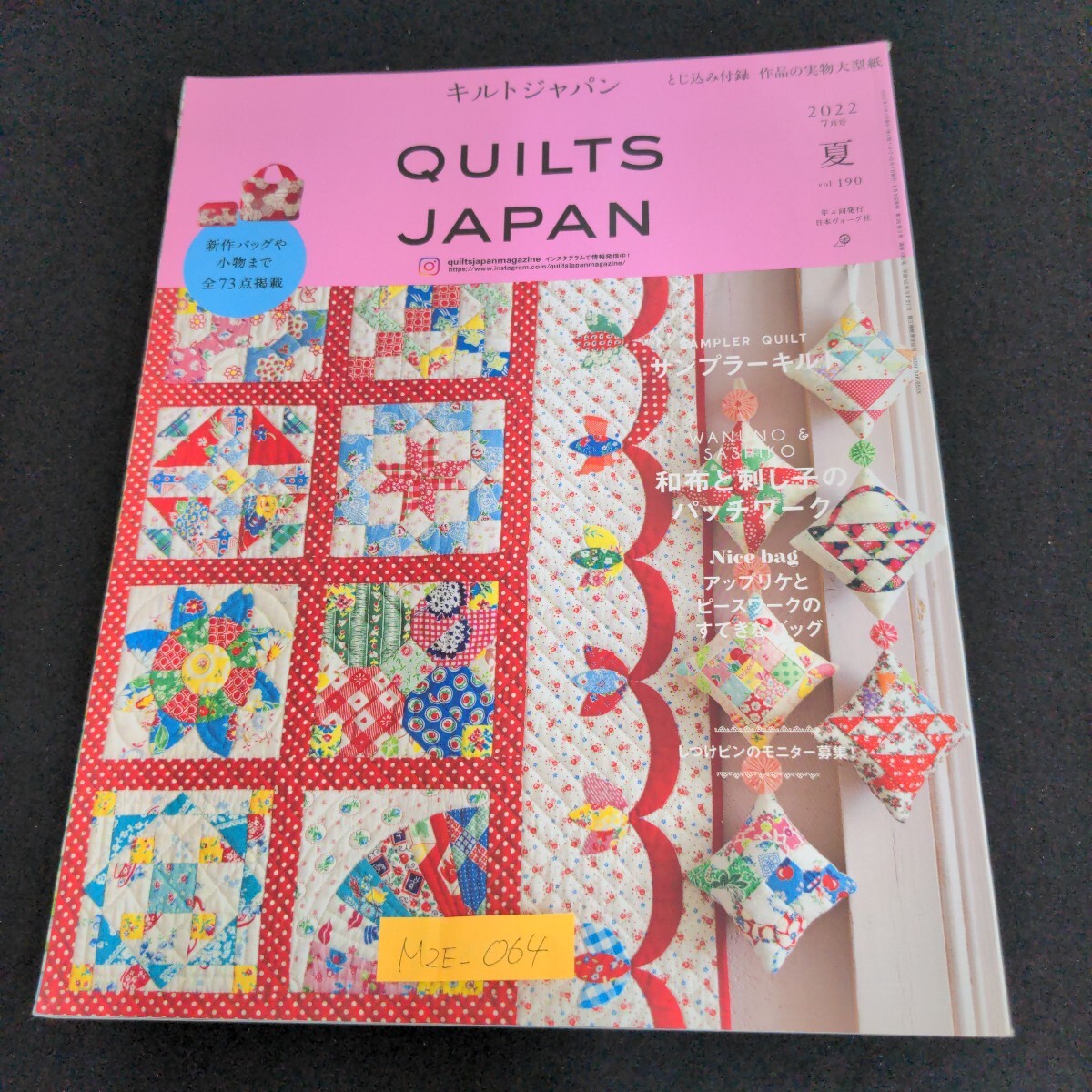 - M2E-064 キルトジャパン QUILT JAPAN 7月号 2022年 夏 vol.190 年4回発行日本ヴォーグ社 新作バッグや小物まで とじ込み付録/実物大型紙