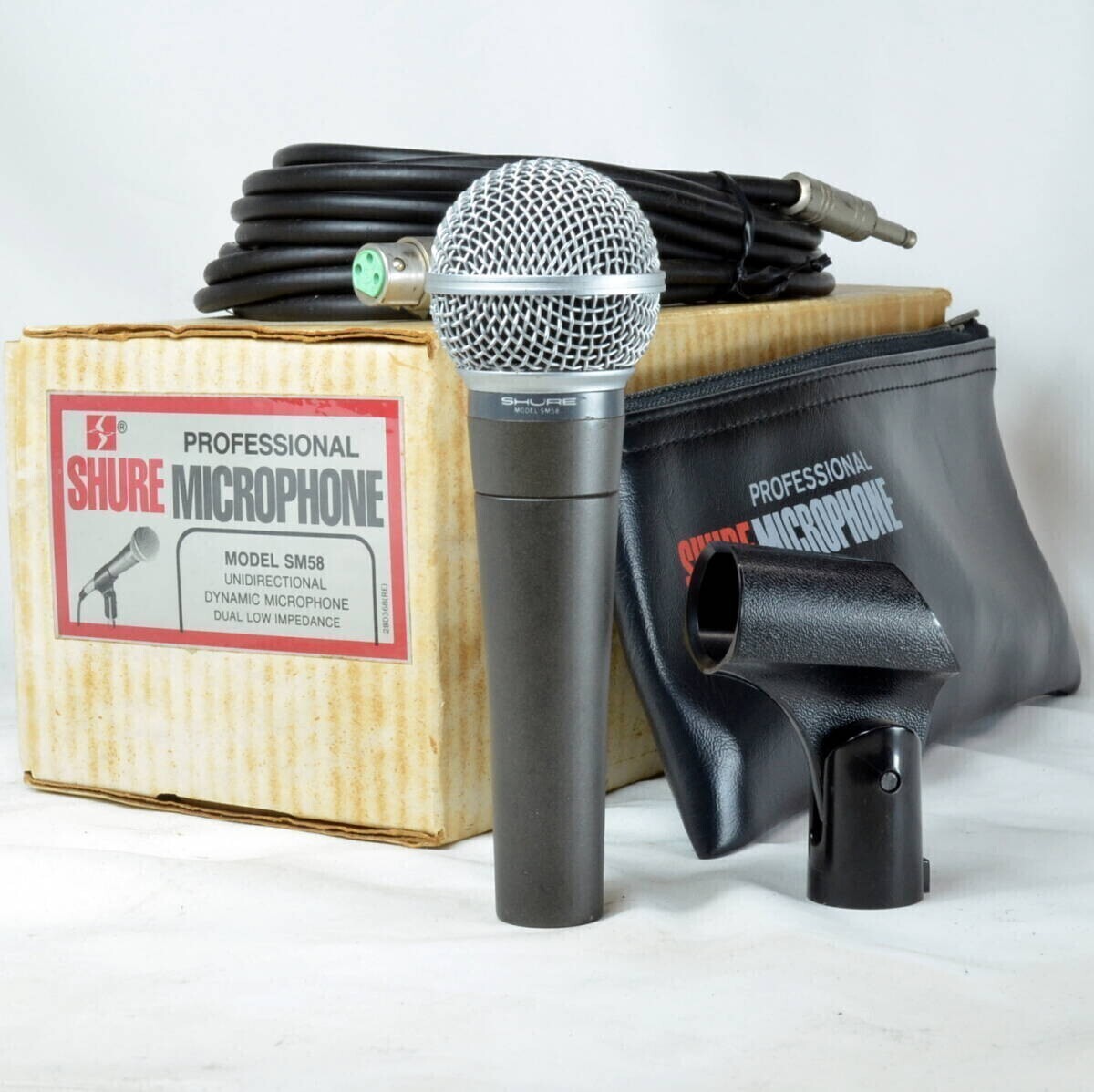 - 【A】Shure SM58 USA 出音良好 1970年代 ビンテージマイク 元箱、ポーチ、マイクホルダー(使用可。下部にクラック)、純正ケーブル付属