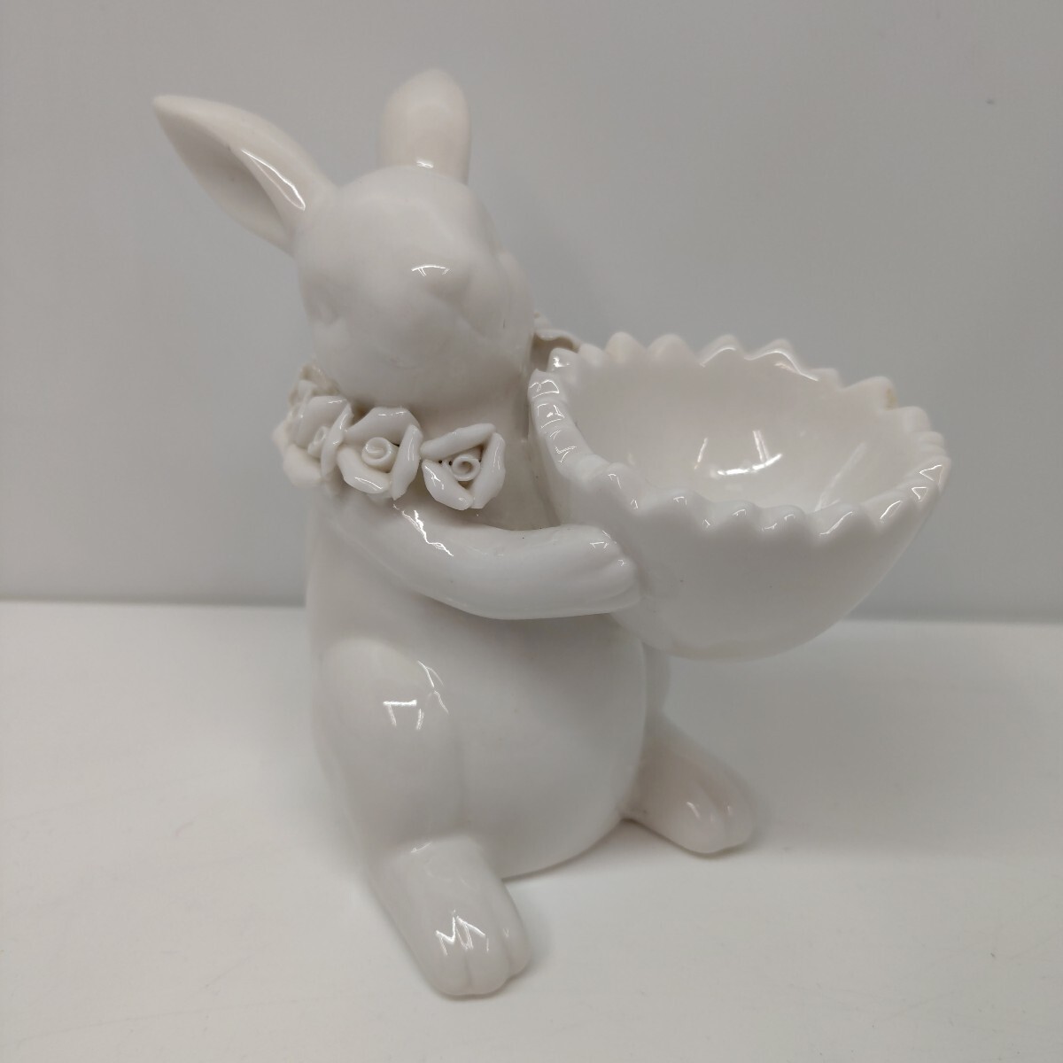 - 陶器 うさぎ 兎 エッグスタンド 小物入れ インテリア アンティーク雑貨 置物