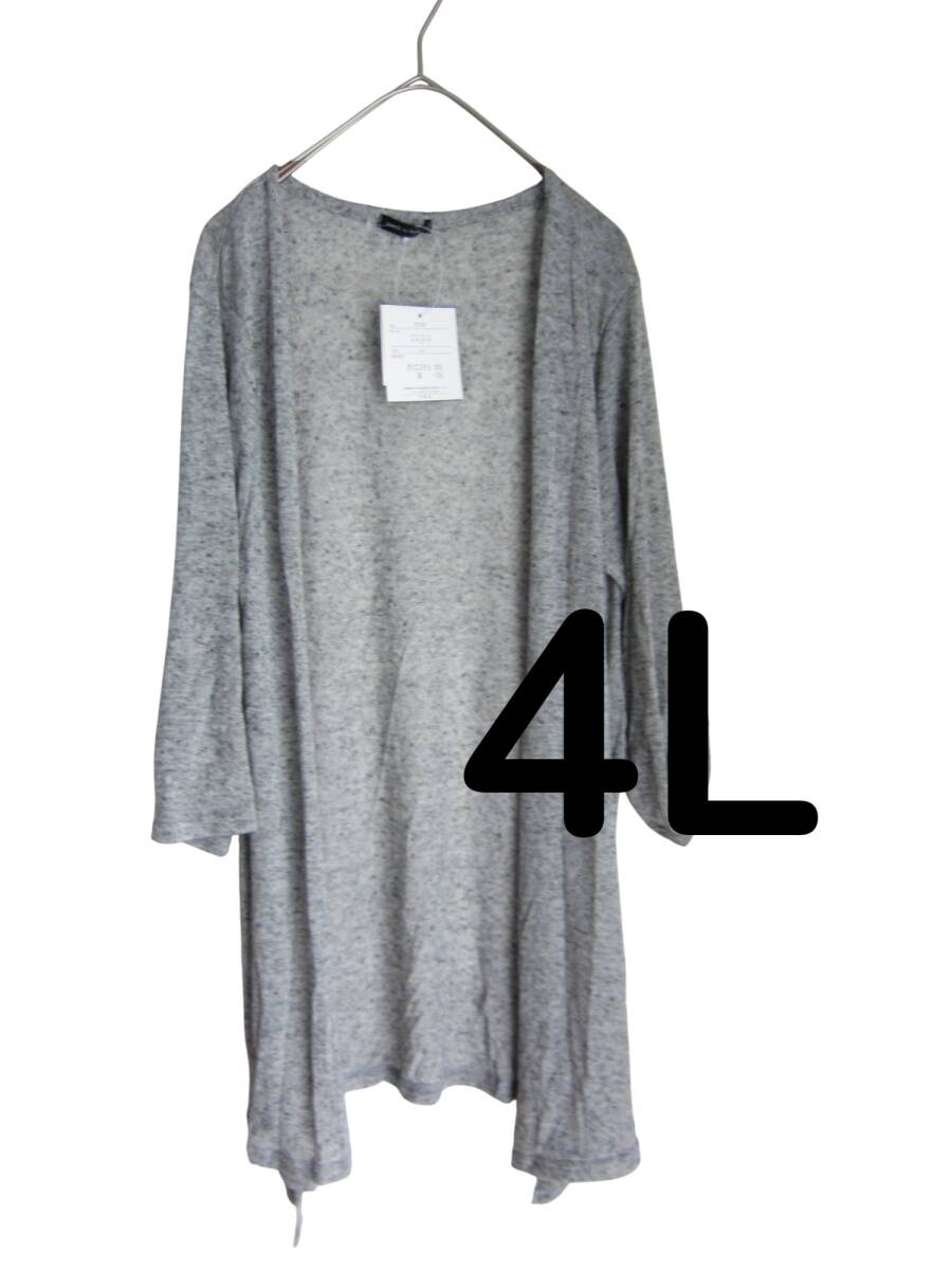 > ★送料無料 R57 新品 【4L】 グレー トッパー 7分袖 袖ロールアップ カーディガン 大きいサイズ ゆうパケットポスト