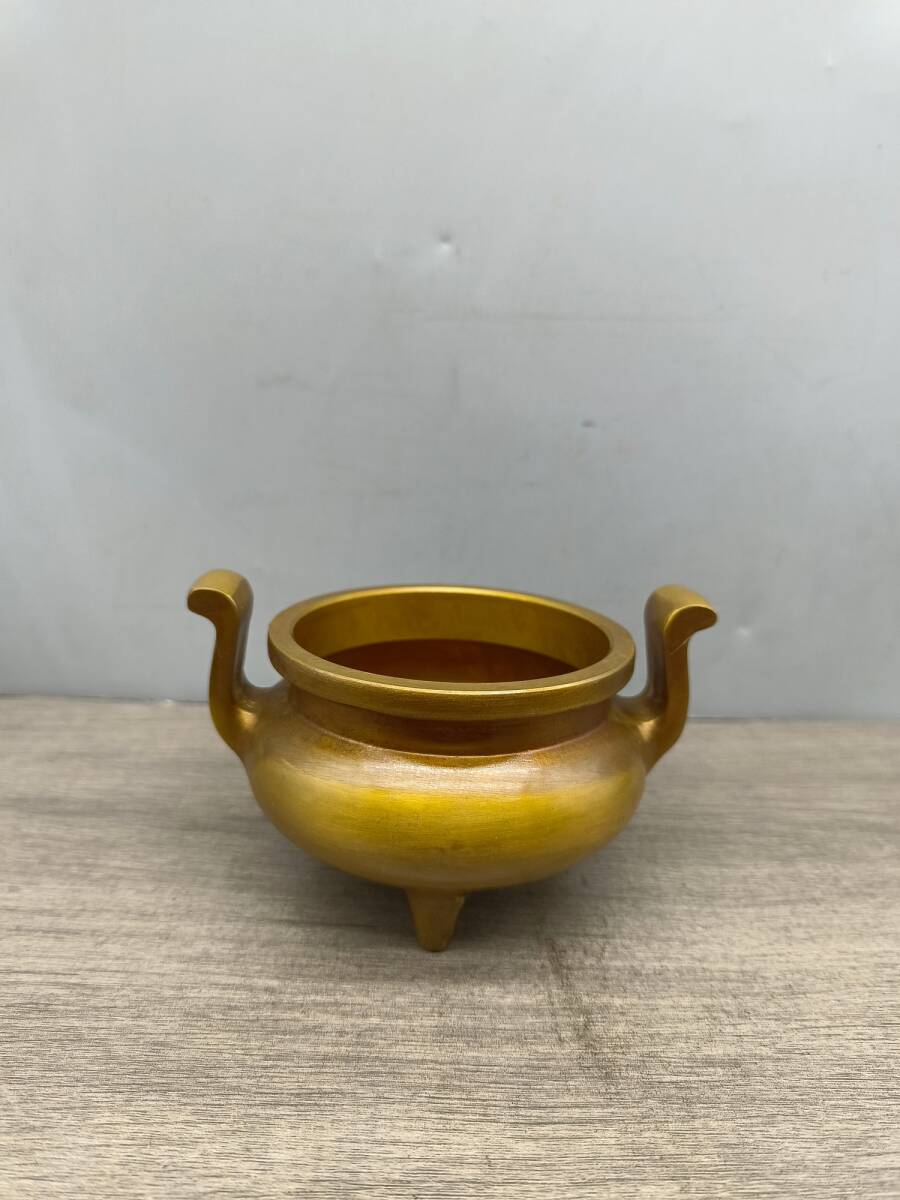 - 蔵友旧蔵出 銅製 塗金 雙彎耳三足 熏香爐 希少珍品 貴重品 置物 古賞物 密宗密教 供養品 仏教美術品