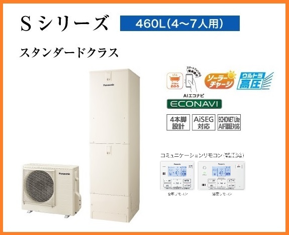 - 新品 25年製 Panasonic Sシリーズ エコキュート ウルトラ高圧 470L AIエコナビ フルオート 追い焚き 屋外設置 給湯器 HE-SU46LQS [9428]