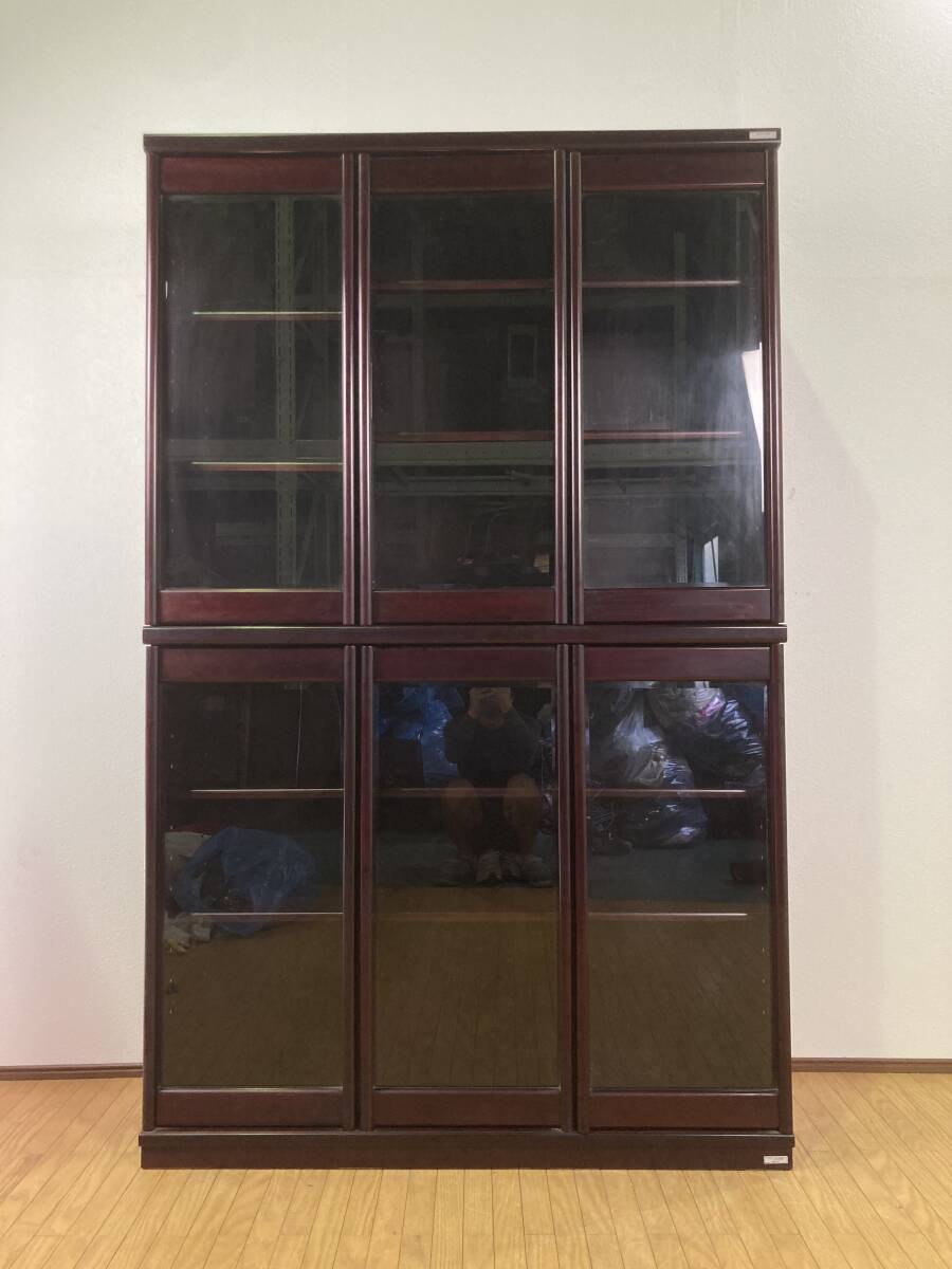 > ★IDC 大塚家具★ 高級 小島工芸 6枚ガラス扉 大型 195 120 本棚 大容量 キャビネット 激安 格安 スライド書棚 ブックシェルフ 引き取り可