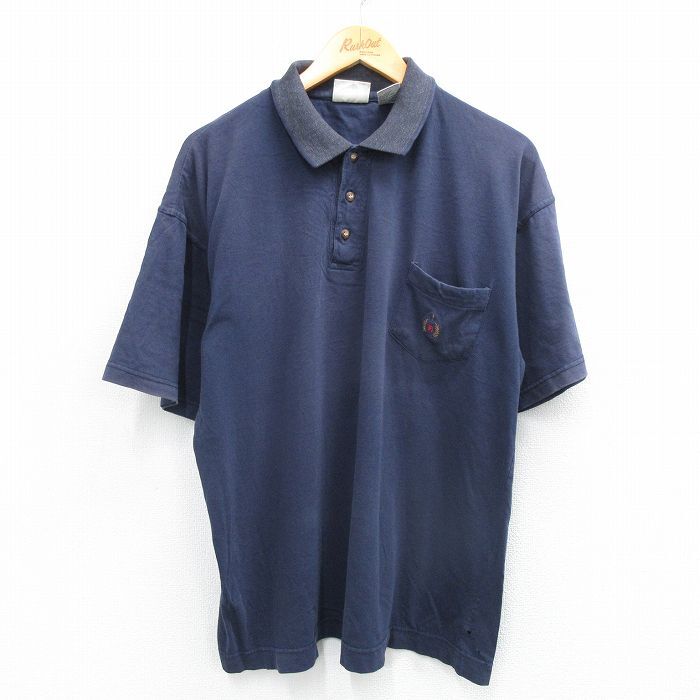- XL/古着 ビューグルボーイ 半袖 ポロ シャツ メンズ 00s ワンポイントロゴ コットン 紺 ネイビー 25sep03 中古 トップス