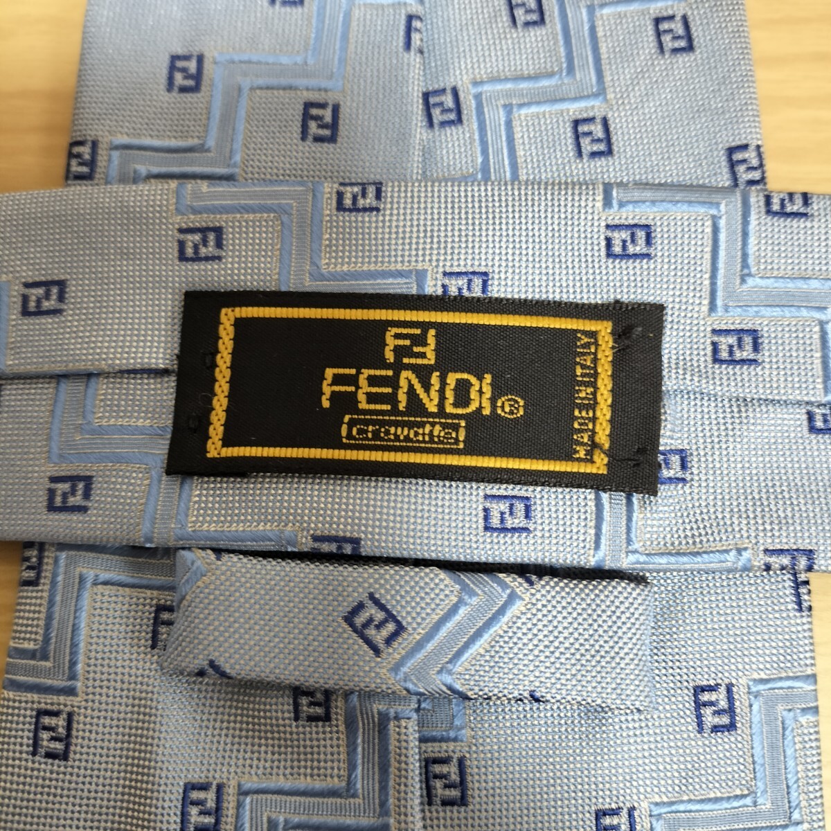 - FENDI(フェンディ)水色ズッカ波ストライプ模様ネクタイ