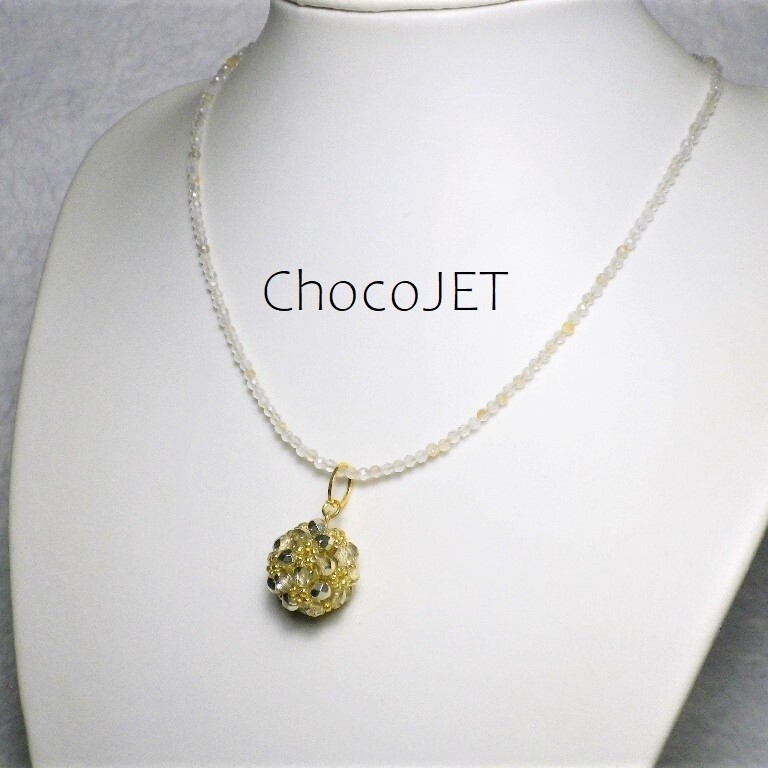 - チェコゴールドビーズボールネックレス ゴールデンルチルクォーツ くす玉金色チャーム