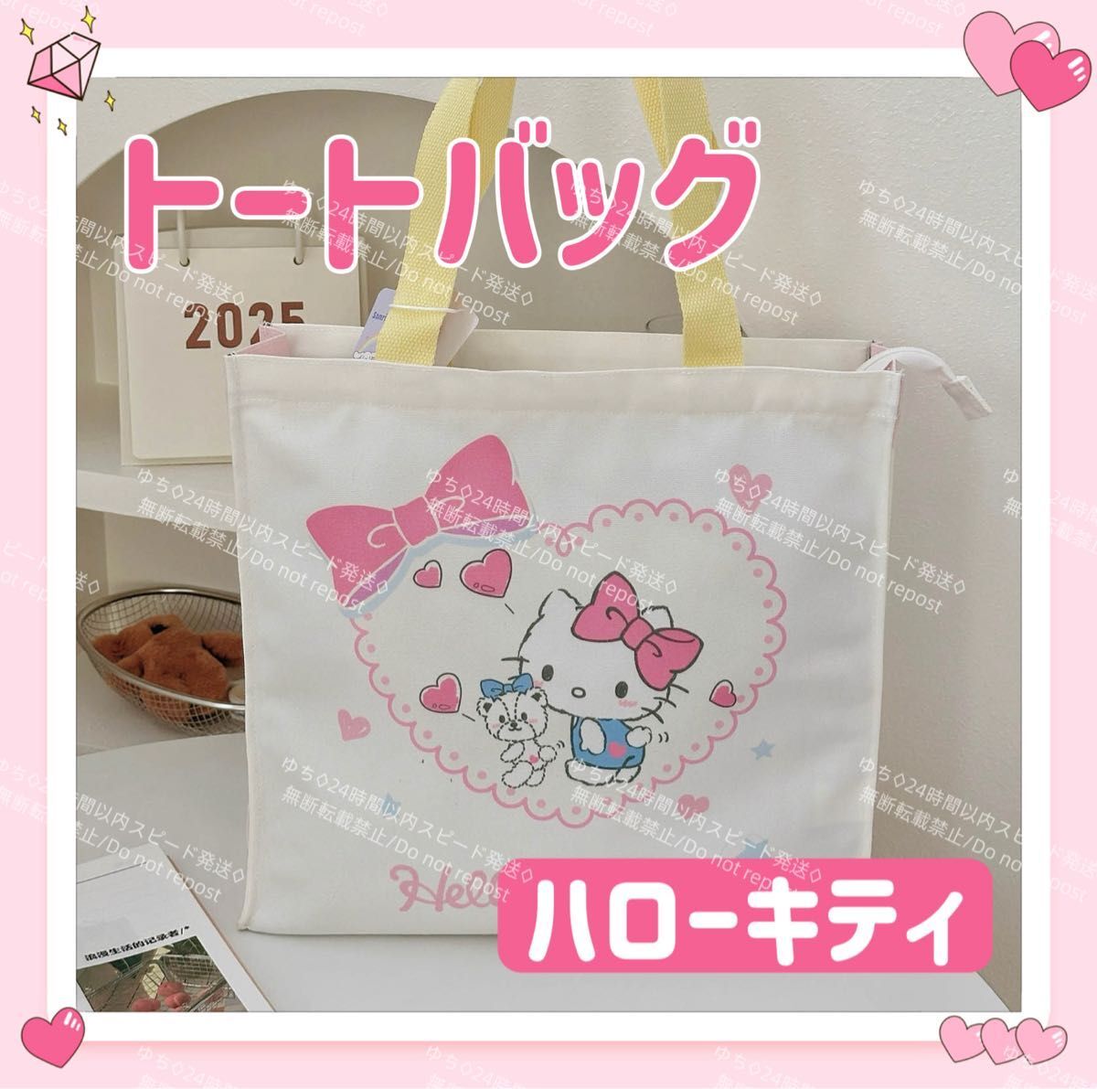 - おまけ◎ 海外限定 サンリオ リバーシブル トートバッグ エコバッグ サブバッグ 肩掛け 手提げ 収納 シンプル ハローキティ