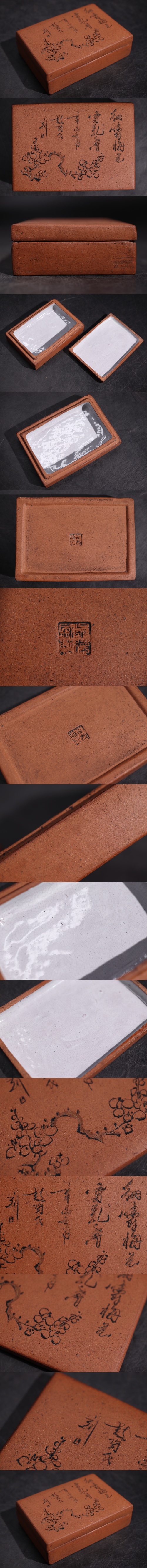 - 呉徳盛製 底款 朱泥 梅花 ・ 漢詩彫 香合 / 中国美術 香道具 茶器 煎茶道具 検索: 紫砂 紫泥 白泥 .G2476