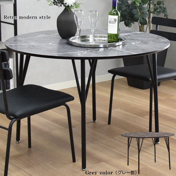 > 2人~4人掛け用大理石柄メラミン化粧板直径105cm円型天板ダイニングテーブル グレー色 丸 ディスプレイテーブル スチール脚 軽量
