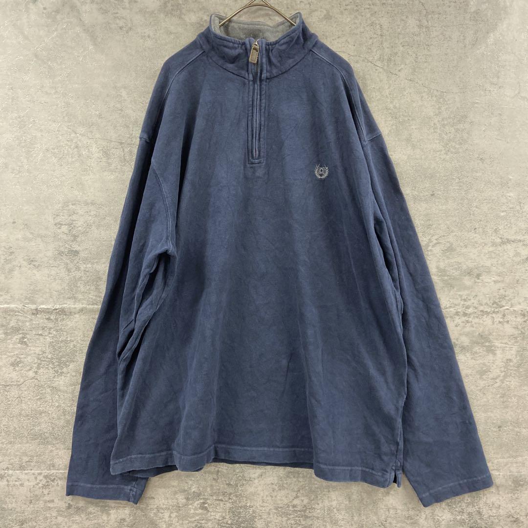 - チャップス メンズハーフジップスウェット 綿100% ロゴ XL 紺【5647】