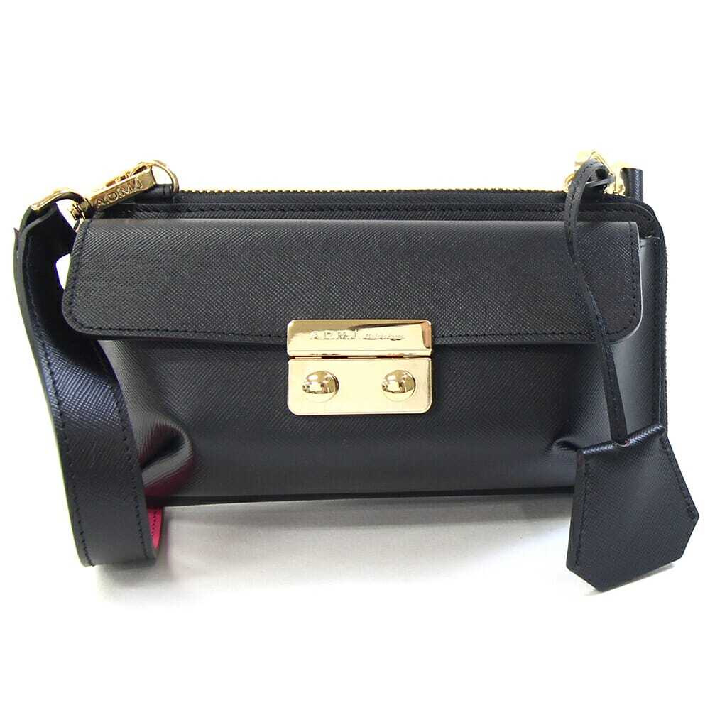 - エーディーエムジェイ ショルダーウォレット ブラック ピンク レザー 中古 斜め掛け ショルダーバッグ 財布 ポシェット