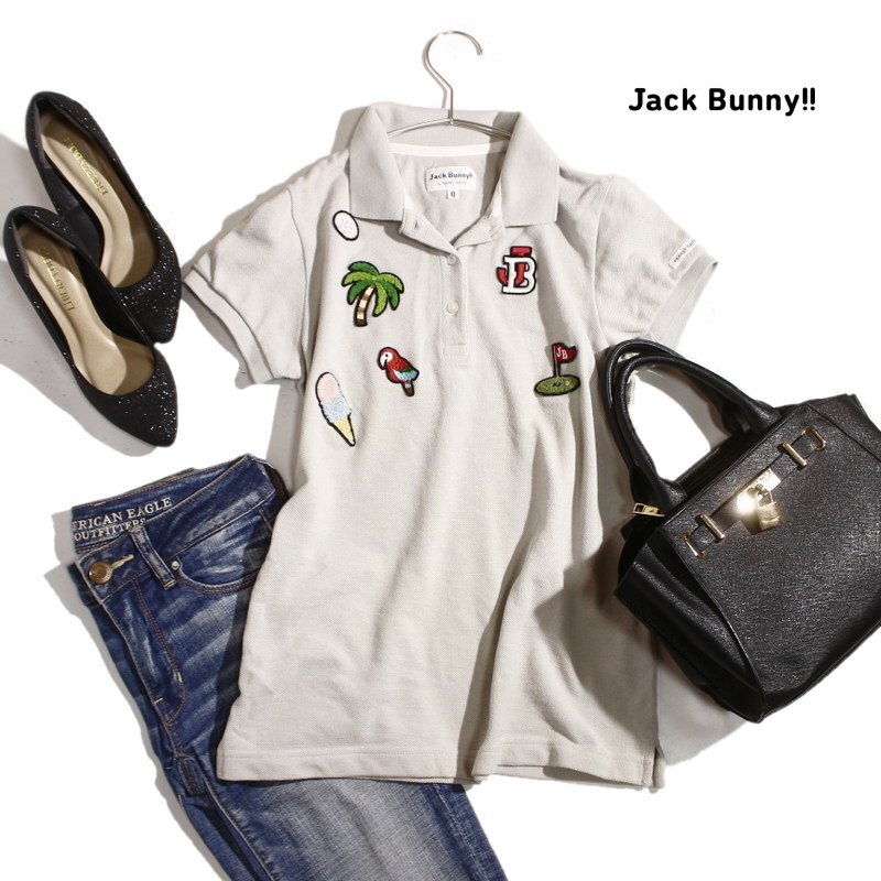 - 美品 Jack Bunny!! ジャックバニー レディース ワッペン 刺繍 半袖 ポロシャツ 0 グレー ポロシャツ ロゴ刺繍