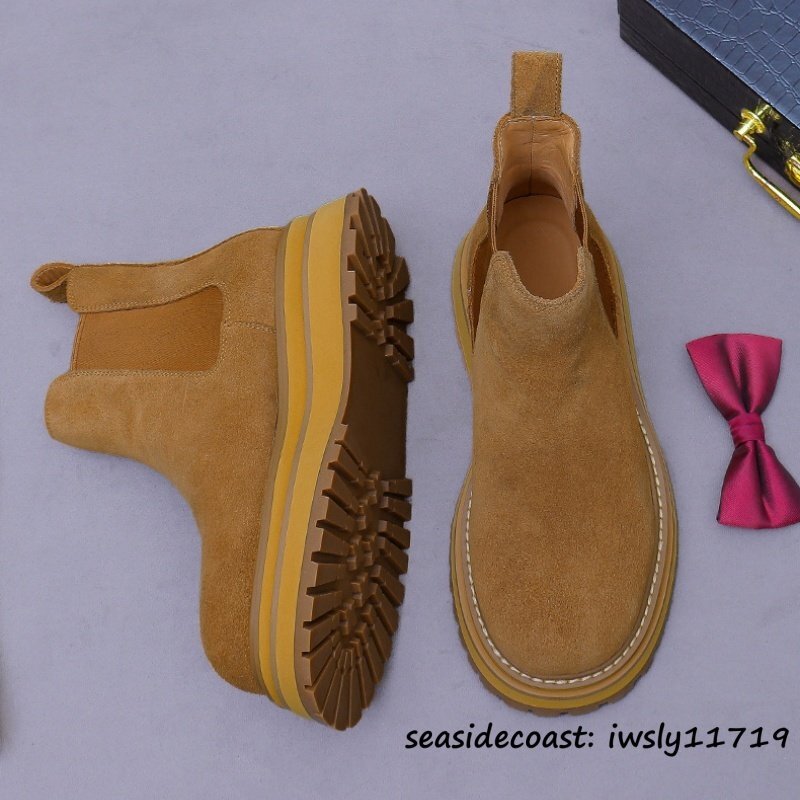 - 最高級*新品 レザーブーツ メンズ スエード革 ショートブーツ マーティンブーツ 牛革 職人手作り ハイカット 厚底 超軽量 ブラウン 27.0cm