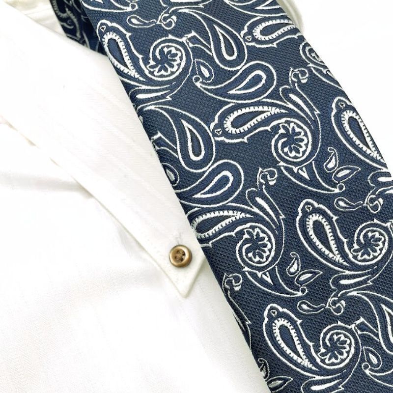 - メンズ ネクタイ ネイビー×白 ペイズリー柄 ビジネス おしゃれ スリム カジュアル【color 09】