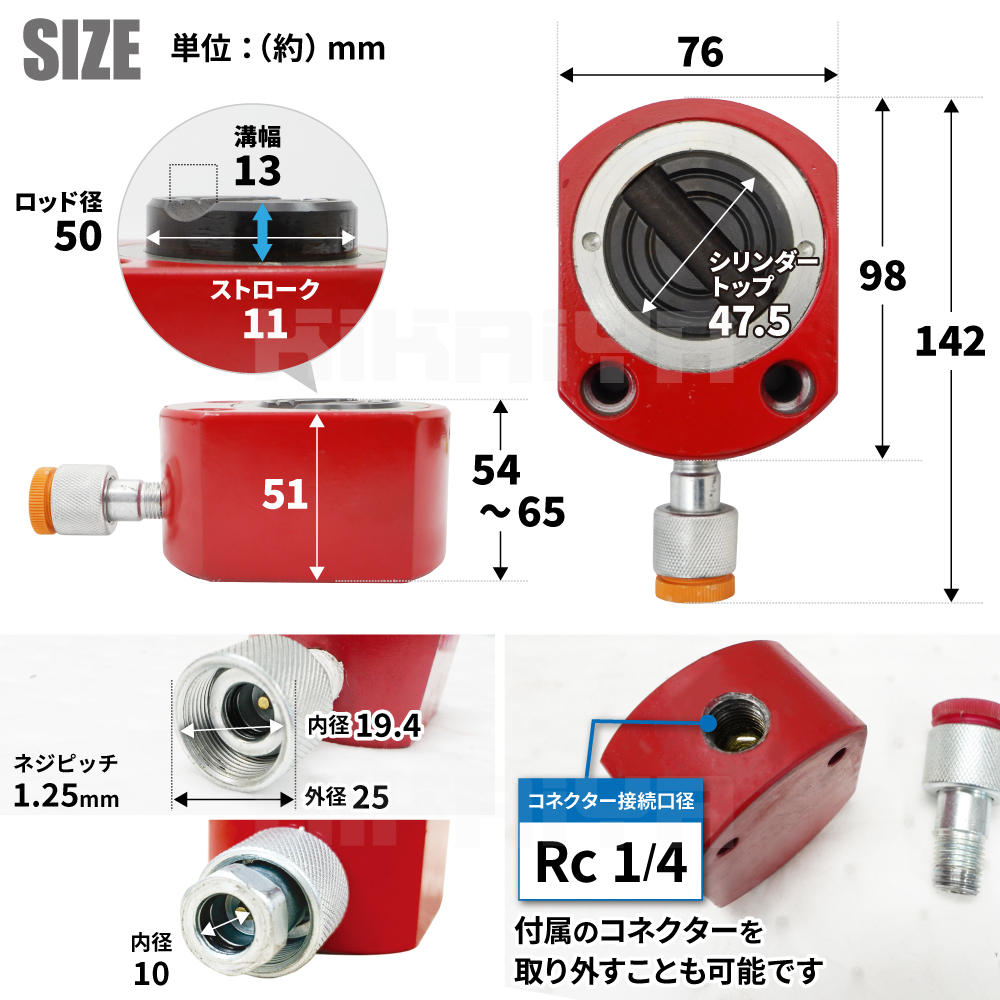 - 油圧 シリンダー 20トン フラットタイプ 使用油量30cc 小型 軽量 薄型 油圧工具 KIKAIYA