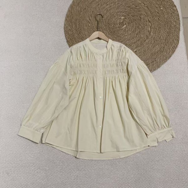 > jn 2509 チュニック トップス ワイシャツ 綿100% ゆったり フリーサイズ ナチュラル 前開け ギャザー