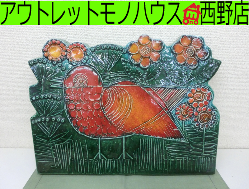 ■リサ・ラーソン 陶板 赤いカッコウスズメ 縦32 x 横43cm 陶芸 工芸 オブジェ カッコウ スズメ 鳥 リサラーソン 壁掛 置物 1963-1969年頃