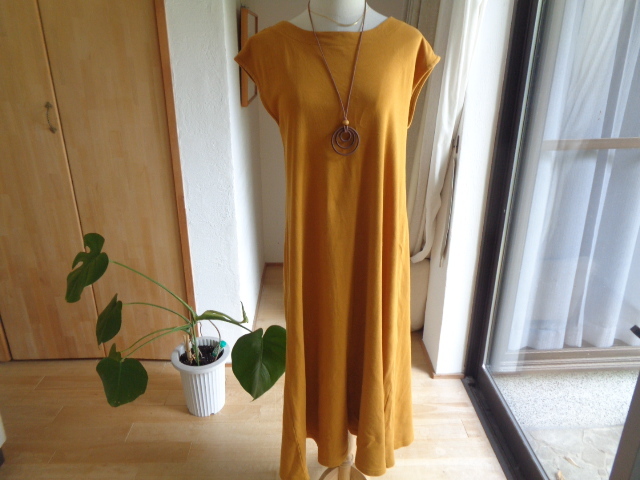 - ナチュラルビューティーベーシック コットン100% フレンチスリーブ カットソーワンピース ロング丈 美シルエット♪ S お洒落♪