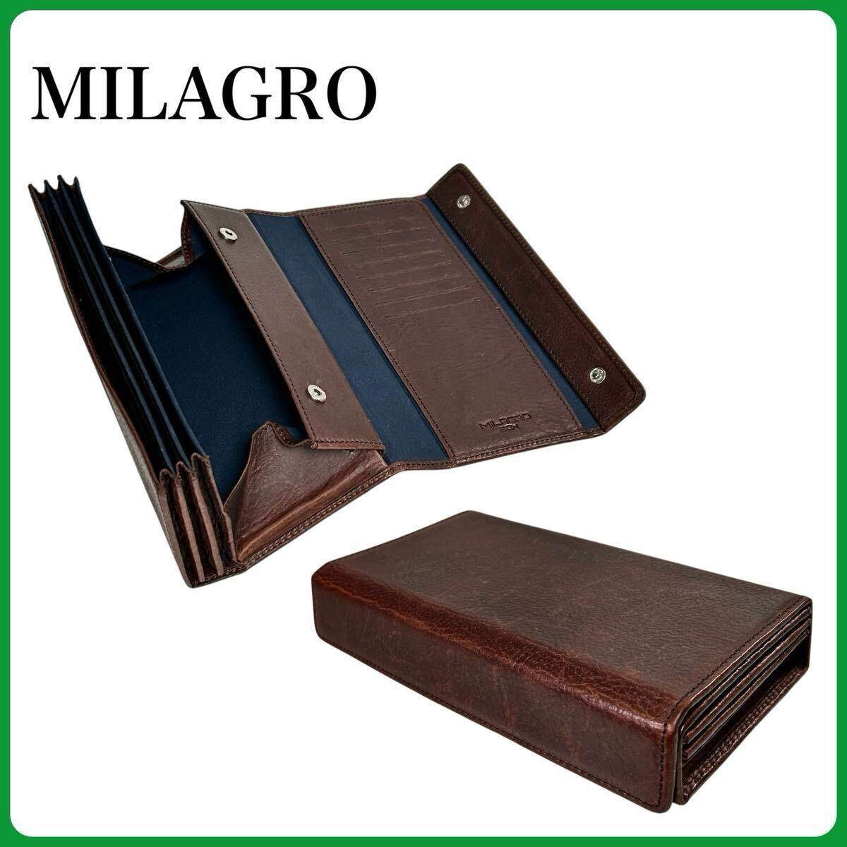 - MILAGRO BOX ギャルソンウォレット ボックスシリーズ ミラグロ レザー 長財布 ブラウン 男女兼用 大容量 ブランド 小銭・カード入れ ロング