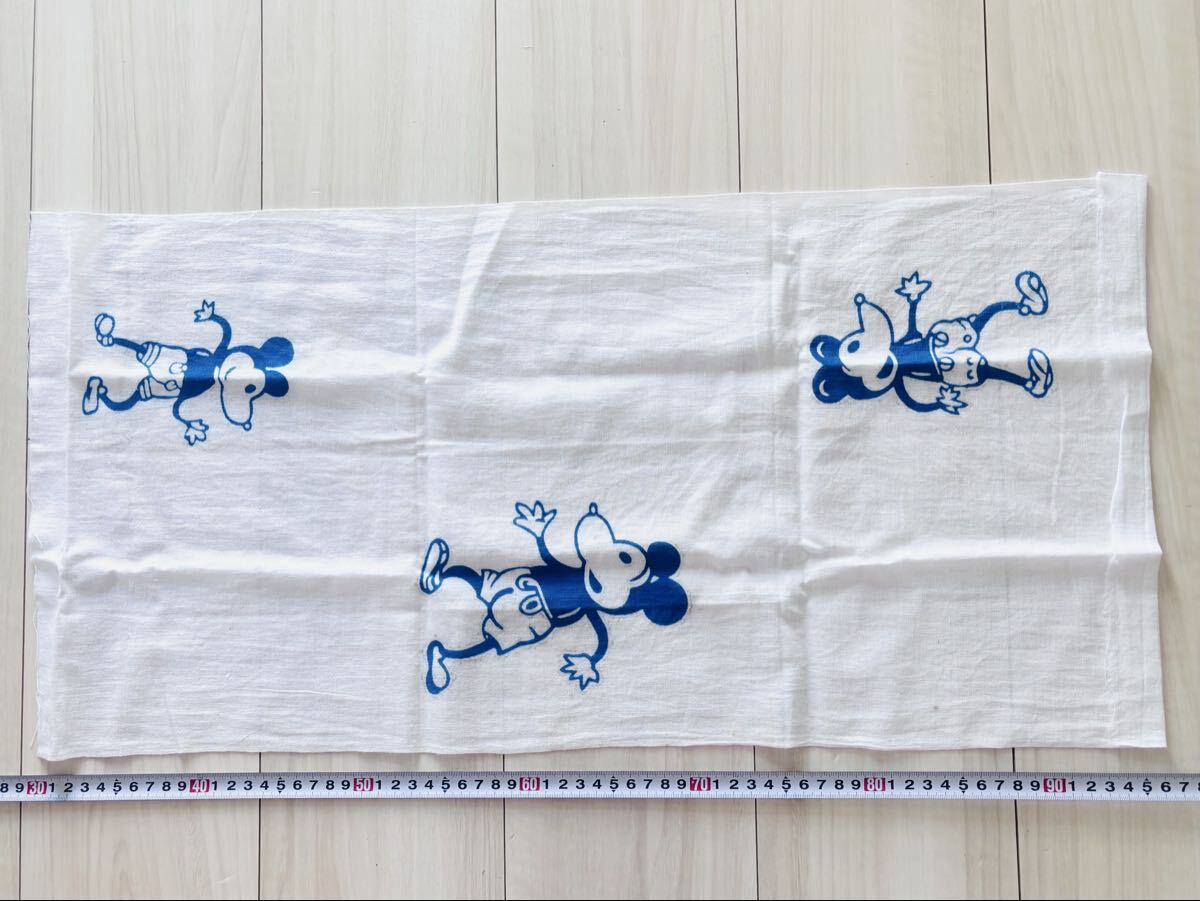 - 珍品 「 手ぬぐい ミッキーマウス 木綿 ハギレ 古布 古裂 リメイク アンティーク レトロ 手拭い 手芸 」縦 約36㎝ 横 約73cm ヴィンテージ